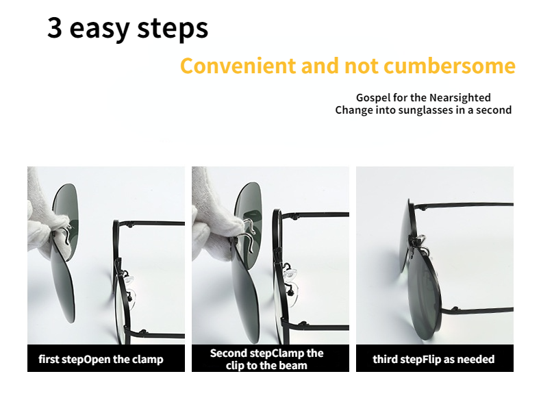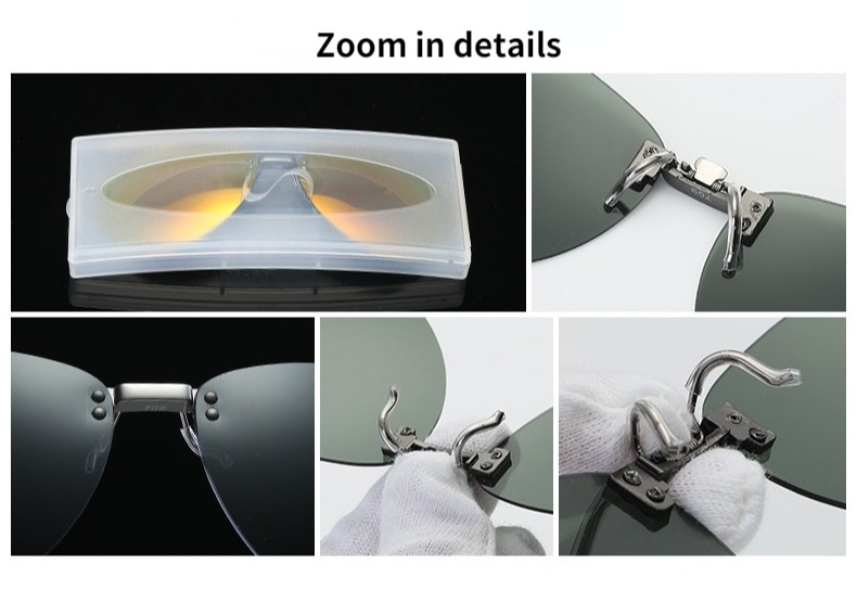 Al-Mg Myopia Clip on Sunglasses Rimless Clip Glasses Polarized Lenses UV400 Suitable Optical Glass