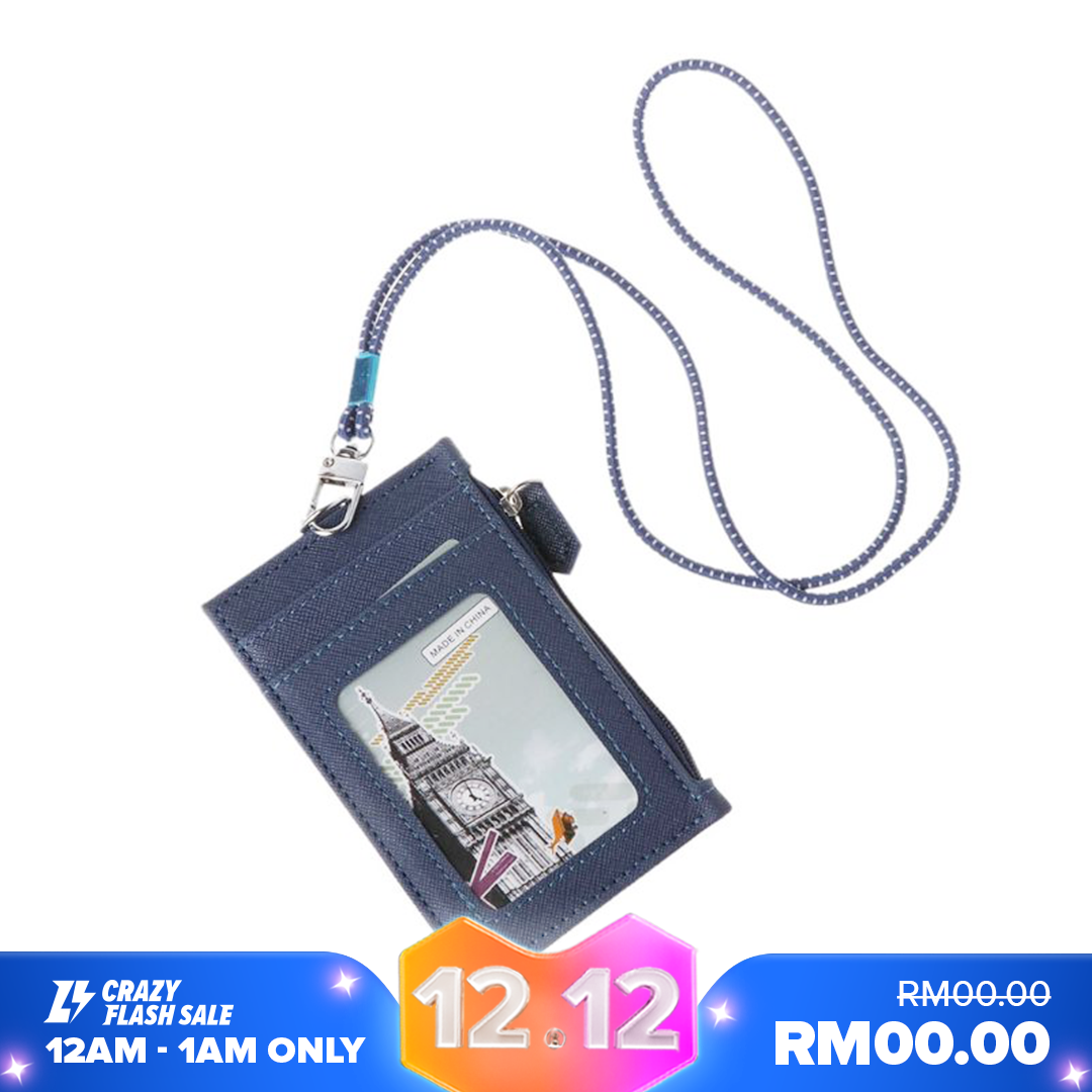 Women Business Card Holder Wallet Men PU Leather ID Cards Holders Case Neck Strap Lanyard Ladies Fashion Mini Slim Wallets