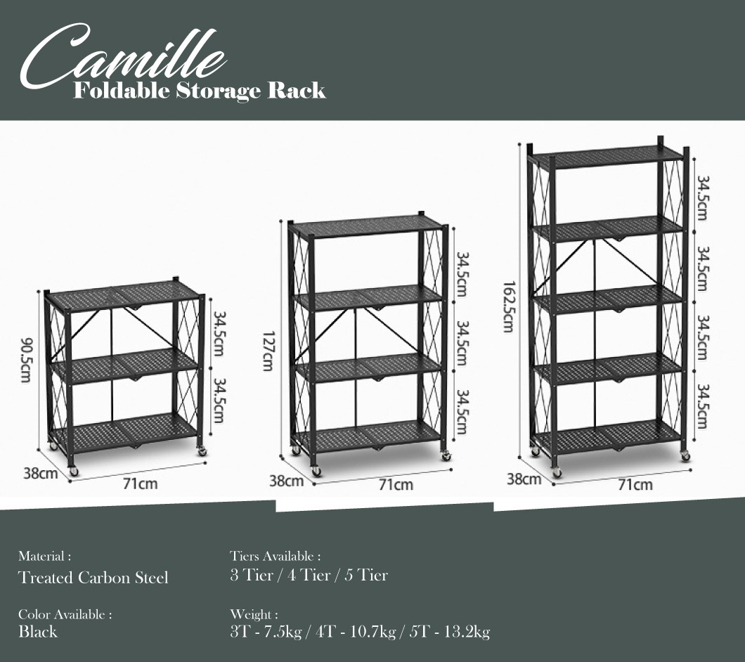 (JIJI.SG) CAMILLE Folding Storage Rack - Fully Foldable EASY INSTALL Full Metal Storage Rack Kitchen Rack / sd