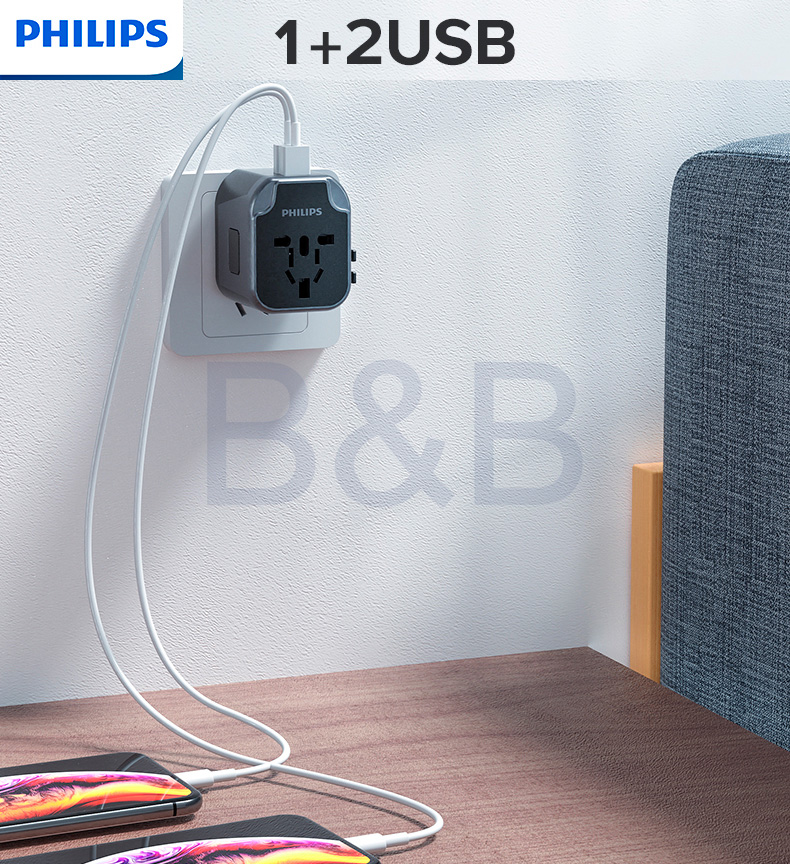 • Philips Newest model of 2USB PortTravel Adaptor, Never worry about USB is too less to use