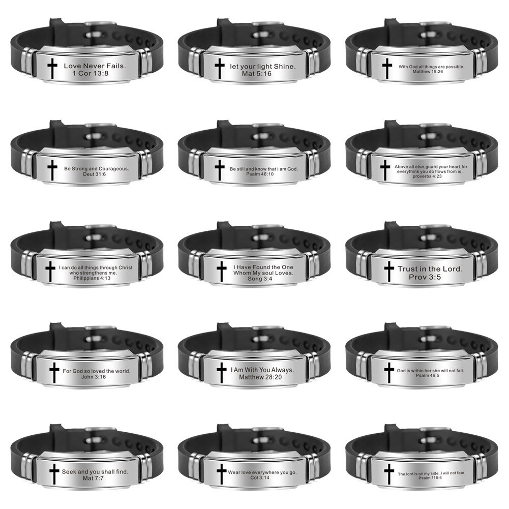 Vnox Religious Cross Jesus Scripture Quote Christian Bible Verse Inspiring Faith Leather Bracelets For Men Personalize Gift【Hot Sale Ready Stock】