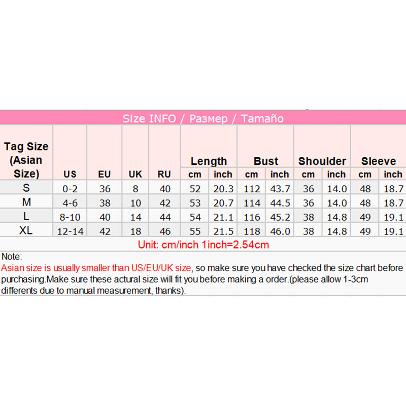 Description:Size chart on the picture,Reference the dummy model picture., Ensure again your addressFeature:FashionMaterial:PolyesterColor:Black/WhiteStyle:CasualSize:S/M/L/XLPackage Content:1 x ShirtPlease Notice:1.Due to the different monitor and light effect, the actual color maybe a slight different from the picture color.2.Please allow 1-3cm differs due to manual measurement.3.Asian Size is smaller than EU/US/UK size,Please compare the detail sizes with yours before purchasing.