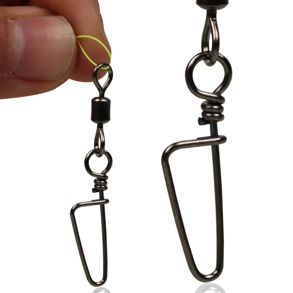 Sougayilang 33mm-70mm 50pcs Swivel Gear Fishing Swivels with Snap Lock Stainless Steel Black Color Nickel Fishing Connector Fishing Gear