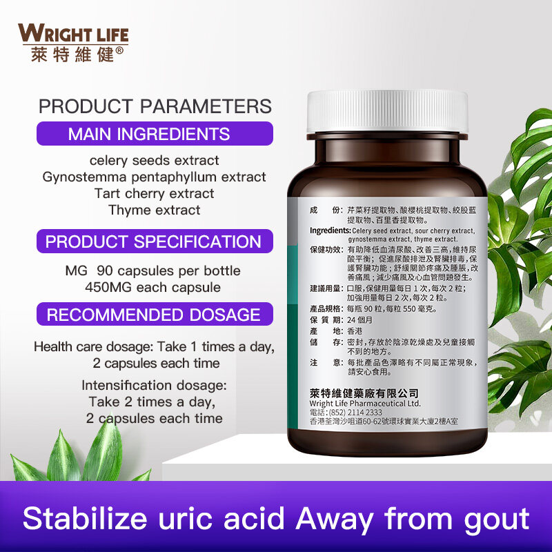 Wright Life Celery Seed Extract 12000mg,Thyme Extract 400mg ,Tart Cherry Extract 400mg ,Gynostemma Pentaphyllum Glycosides 19600mg For Gout Relief Prevent Uric Acid Build-up Supplement 90 Vegetarian C