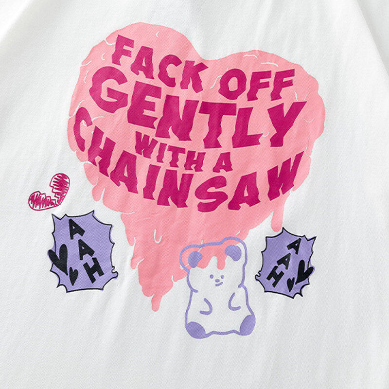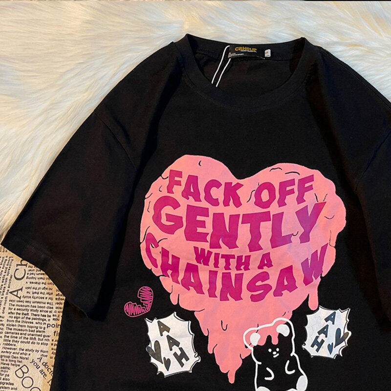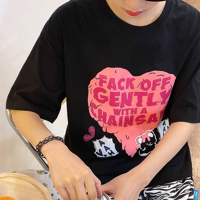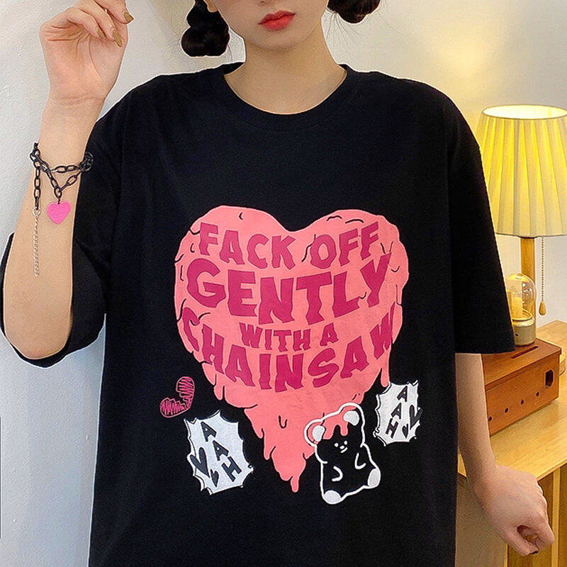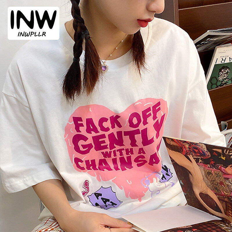 INWPLLR Fashion Trends Letter Tops Women Heart-shaped Printing T-Shirts Summer Korean Style Short Sleeve Little Bear Print Tshirt Lady
