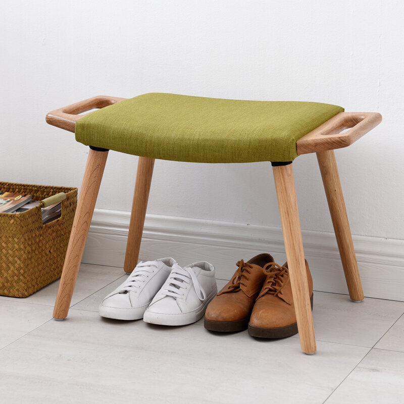 Nordic Solid Wood Shoe Changing Stool Shoe-Wearing Stool Footrest Dressing Stool Fabric Small Stool Sofa Stool Bench Home Low Stool