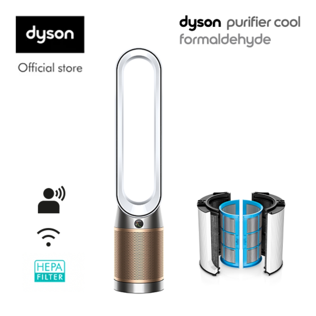 Dyson Purifier Cool ™ Formaldehyde Air Purifier Fan TP09 (White/Gold) with Dyson 360° Glass HEPA+Carbon Air Purifier Filter