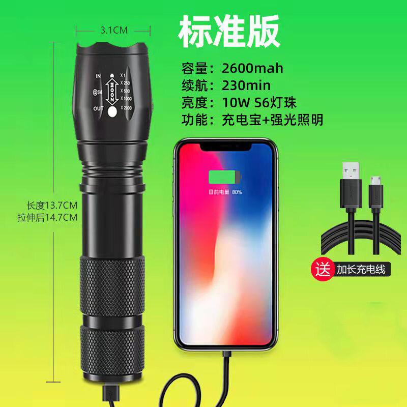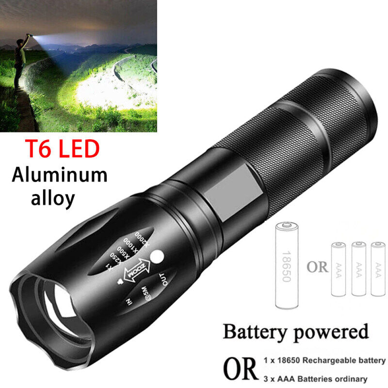980000LM Powerful Battery powered /USB charging LED Flashlight T6 Linterna Torchlight Outdoor Camping strong light Flashlight