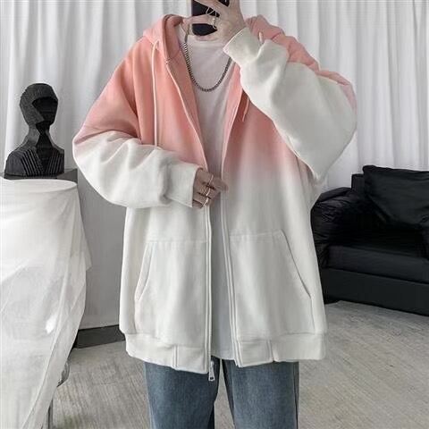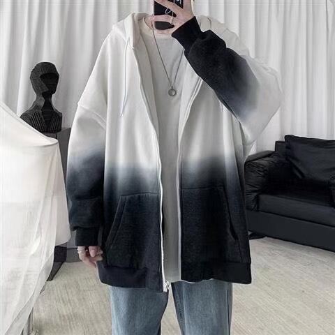 Hong Kong Style Gradient Cardigan Sweater Men's Spring and Autumn Trendy Ins Hooded Top Clothes 2021 New Loose Sports Jacket