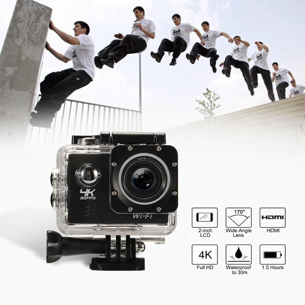 Action Camera,4K Ultra HD WiFi Sports Camera 16MP 170 Degree Wide Angle 2.0 Inch Waterproof Diving Camera with 2 Batteries and 19 Accessories Kit Included Black