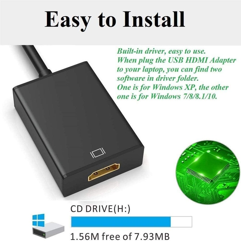 【Prtukyt】USB Adapter To HDMI, type c expander ,HUB USB 3.0 / 2.0 To HDMI, HD Video Audio Adapter, 1080p, PC Video Converter, Laptop, HDTV Compatible with Windows XP / 10 / 8 / 7