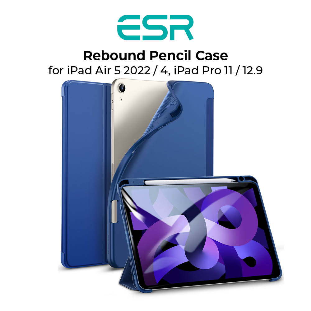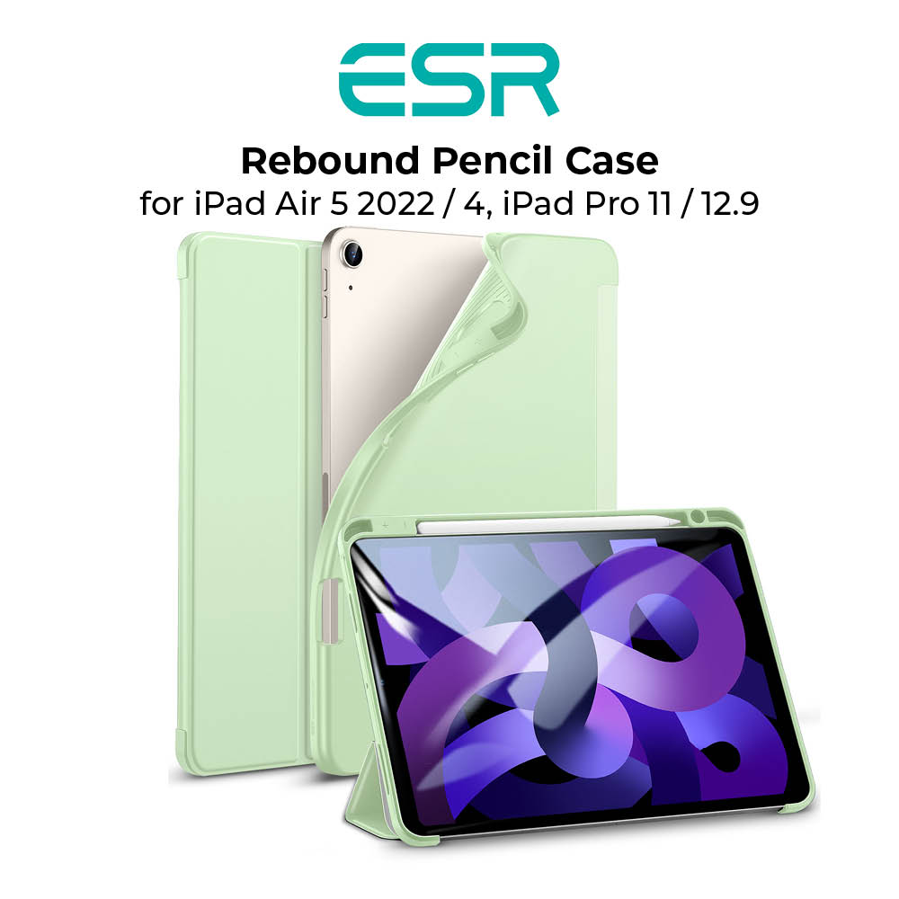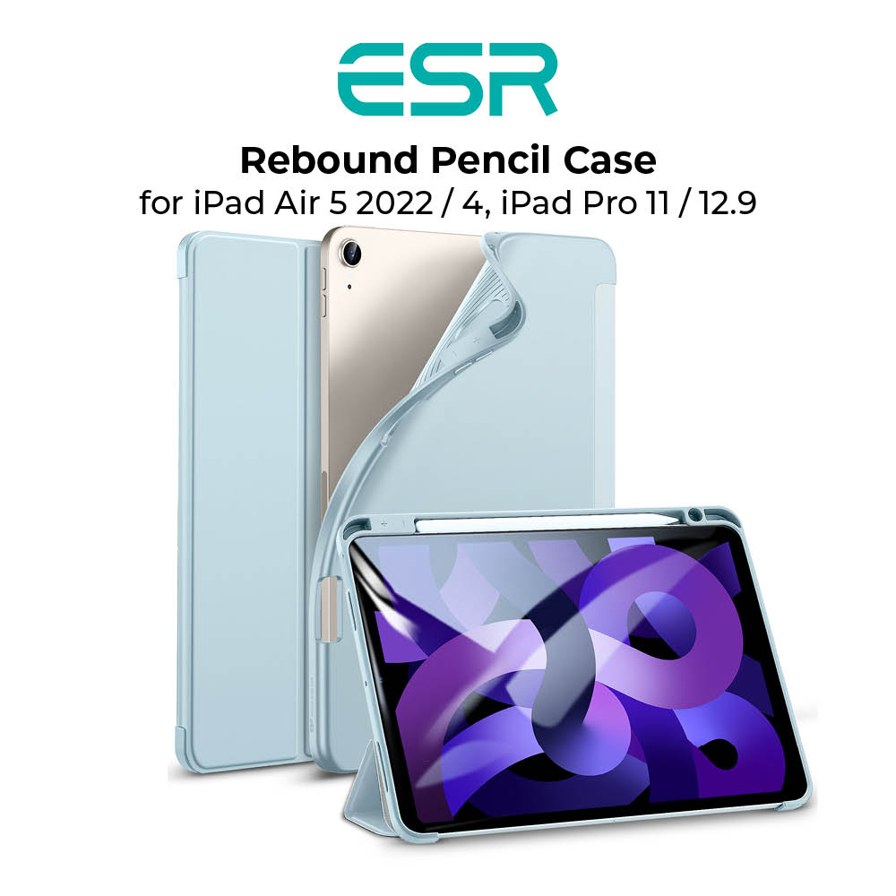 ESR Case for iPad Air 5 2022 iPad Air 4 iPad Pro 11 iPad Pro 12.9 Case with Pencil Holder, Rebound Pencil iPad Case with Soft Flexible TPU Back Cover, Auto Sleep/Wake, and Multiple Viewing Stand Modes