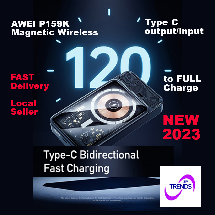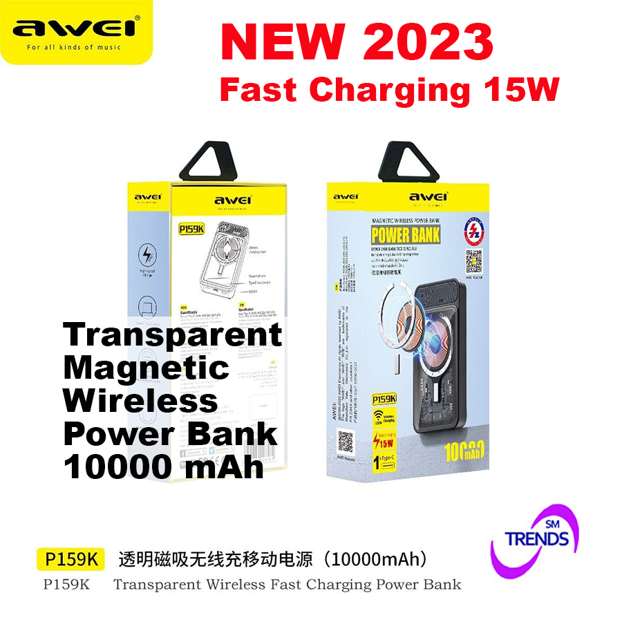 Awei P159K 15W Magnetic Wireless Power Bank 20W PD 10000mAh Type-C Fast Charge Portable Power Bank
