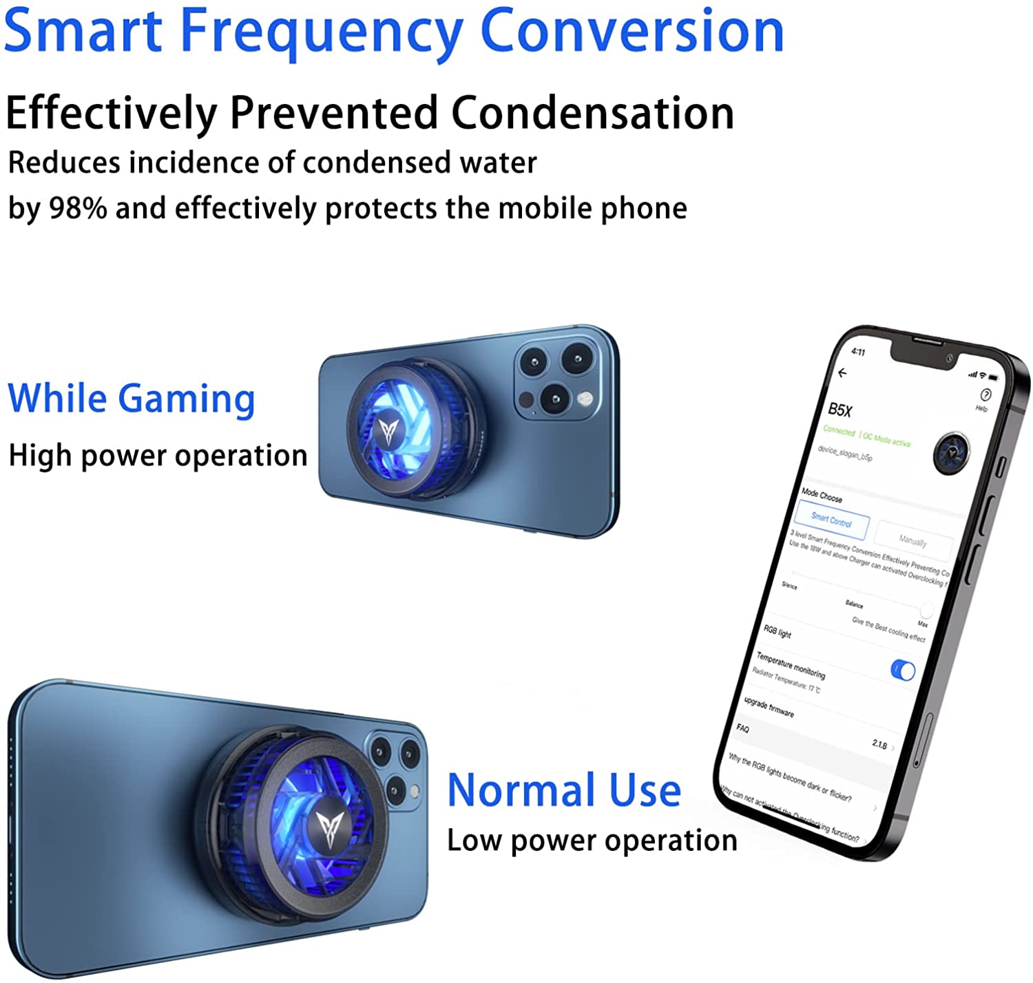 Flydigi B5X Magnetic Cell Phone Cooler, Upgraded 10-15W Higher Power Intelligent Frequency Conversion Temperature Control, Larger Cooling Area, Quieter, Portable Cooling Fan for Phone/ Tablet/ Ipad
