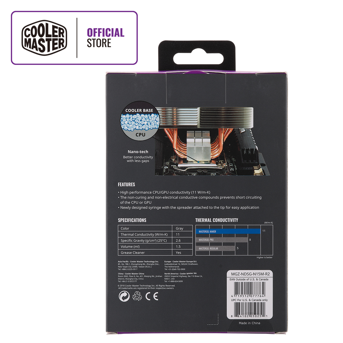 Cooler Master MasterGel Maker Thermal Paste, 11 Thermal Conductivity, Flat-nozzle Syringe Design