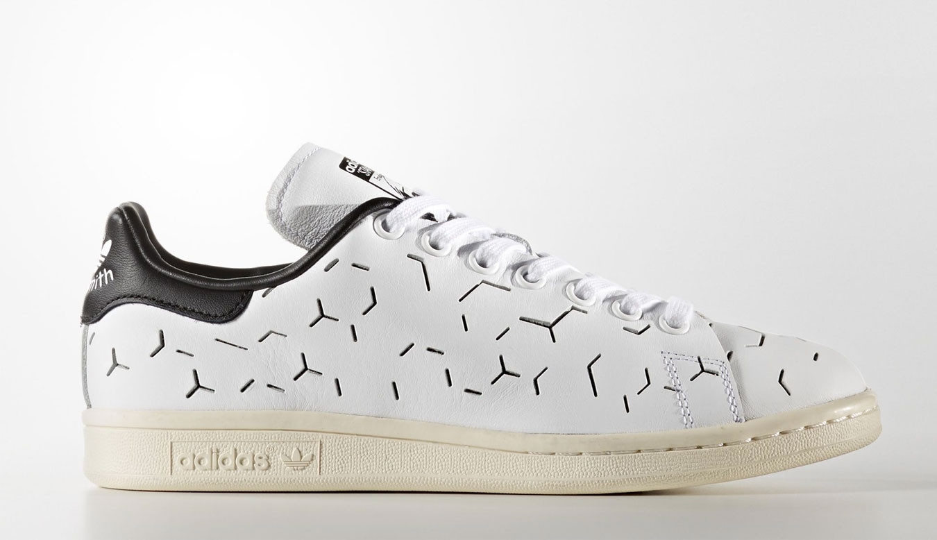 With a modern aesthetic inspired by Scandinavian design, these women's Stan Smith shoes are crafted in leather and feature a geometric laser-cut graphic. Lined with soft leather, they feature a contrast heel tab. A bona fide court champion, the Stan Smith shoe got its name from the biggest tennis star of the '70s. Beloved across the globe, it has a style game that's only improving with age. With a modern aesthetic inspired by Scandinavian design, these women's Stan Smith shoes are crafted in leather and feature a crisp laser-cut geometric graphic. Lined with soft leather, they feature a contrast heel tab and rubber cupsole. Debossed foil tongue label Synthetic leather lining. Enjoy the comfort and performance of OrthoLite® sockliner. Vintage leather heel patch with debossed Trefoil logo. Rubber cupsole