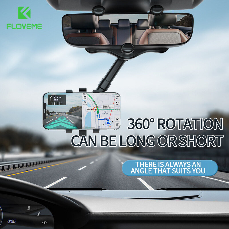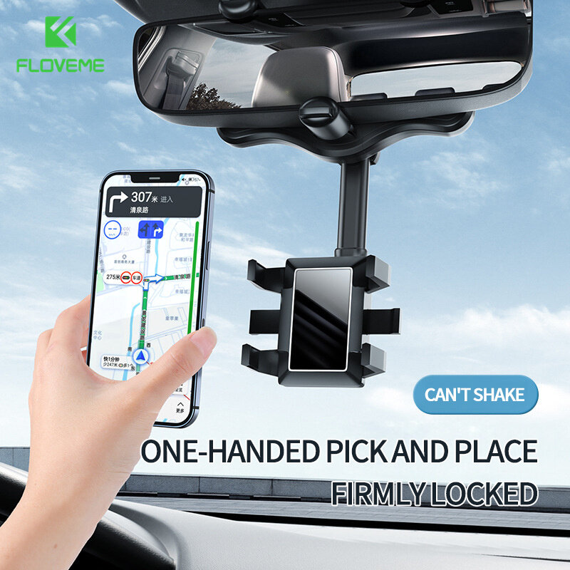 FLOVEME New Multifunctional Car Phone Holder Car Rearview Mirror Mounts for GPS Navigation 360° Rotating Retractable Car Phone Stand Holder for iPhone 14 Pro Max 13 12 Pro Max Samsung S22 Ultra S21 Ul