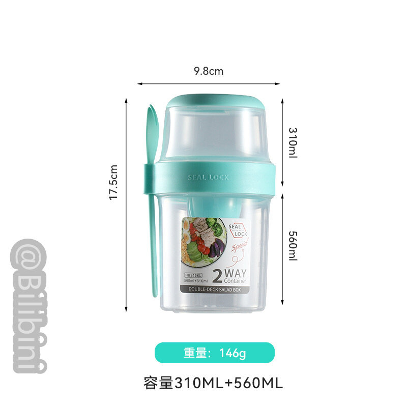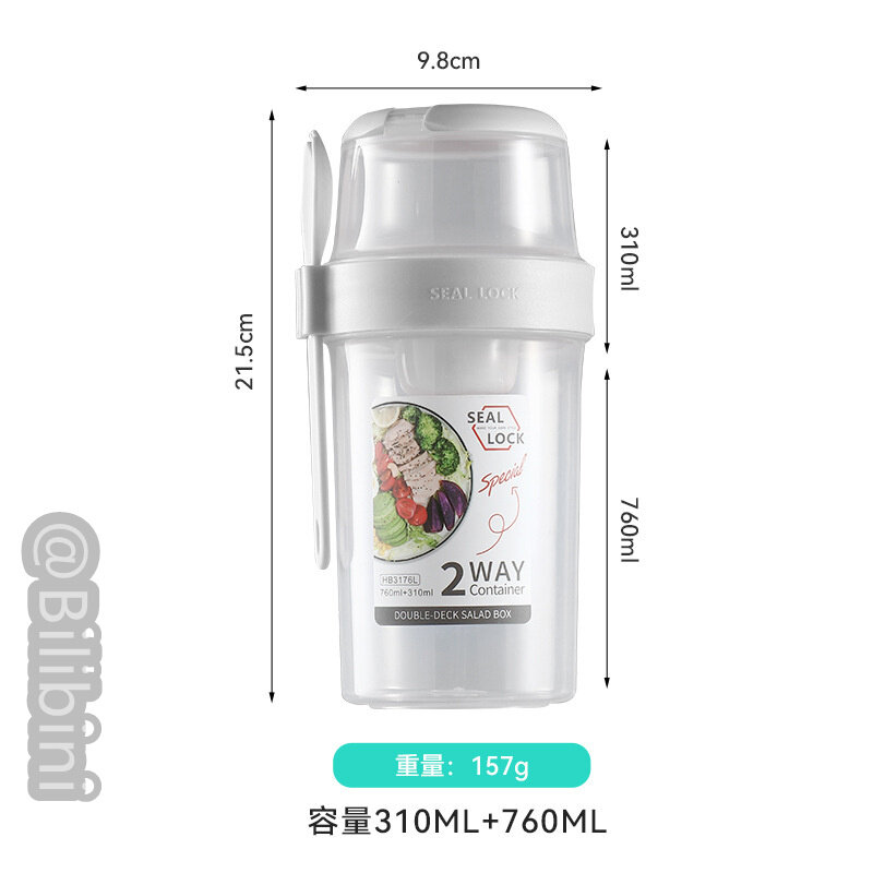 Bilibini With Spoon Lid With Fork Seal Portable Light Meal Double Layer Salad Cup