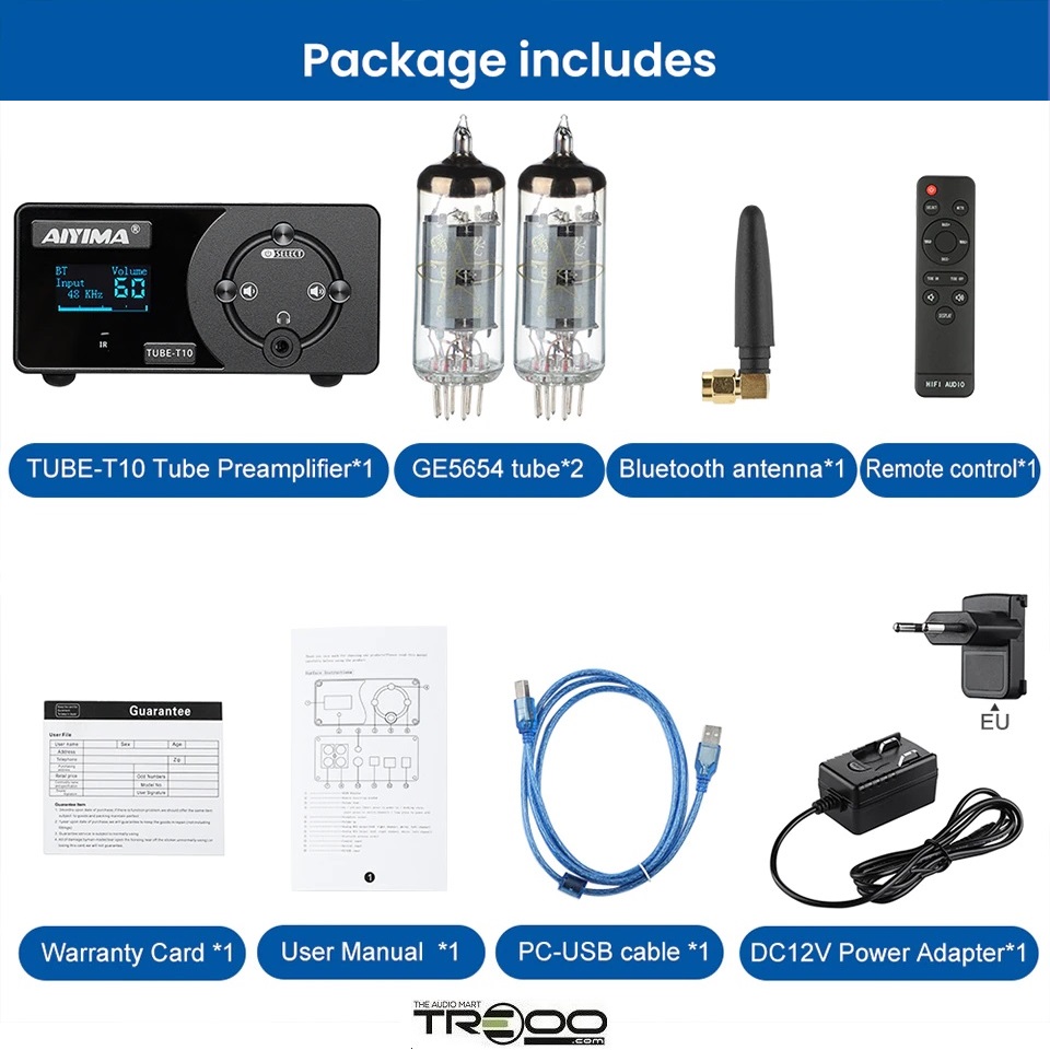 AIYIMA TUBE-T10 (T10) Wireless Bluetooth Receiver/Streamer, Coaxial / Optical / USB DAC & Tube Preamplifier (Official local stock - SG/UK plug)