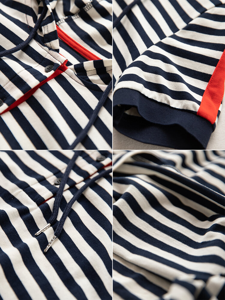 September Momo 2022 Summer New Short Sleeve High-Grade Slimming Hooded Dress Polo Collar Striped Dress for Women