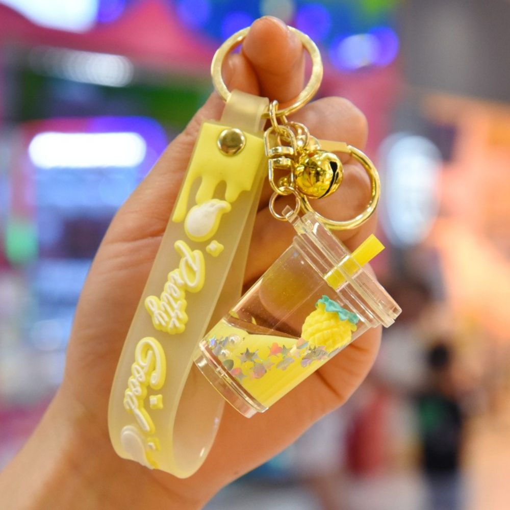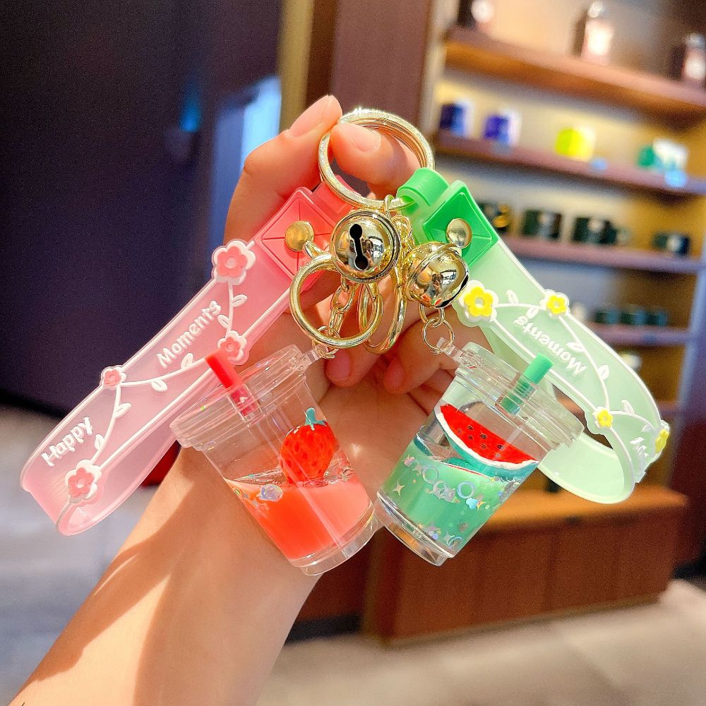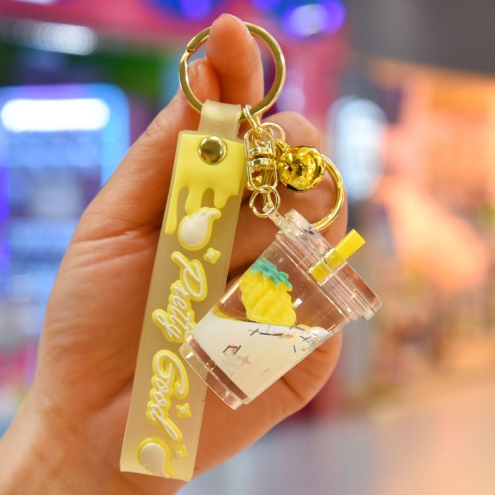 HUIHEYU Into The Oil Moving Key Holder Fashion Jewelry Exquisite Gifts Car Key charms Bag Ornaments Wristlet Keychain Milk Tea Cup Pendant Quicksand Fruit Keychain
