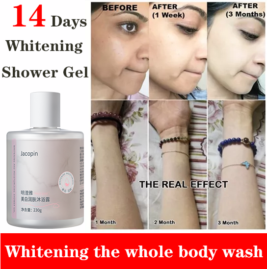 Usage: 1. Take an appropriate amount of Whitening shower gel in the palm of your hand or match it with a shower ball 2. Gently massage the whole body to pro-duce rich foam 3. Rinse with clean water after bathing