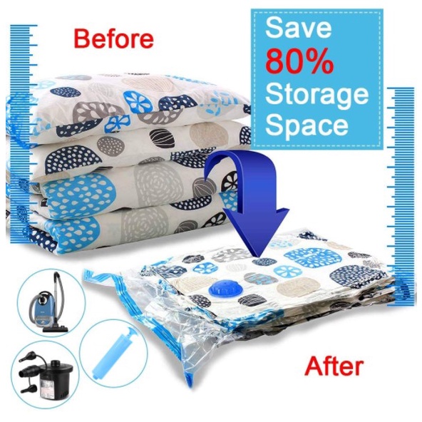 ● Double-zip seal, with plastic valve compatible with a hand vacuum pump or vacuum cleaner to make them air-tight.
