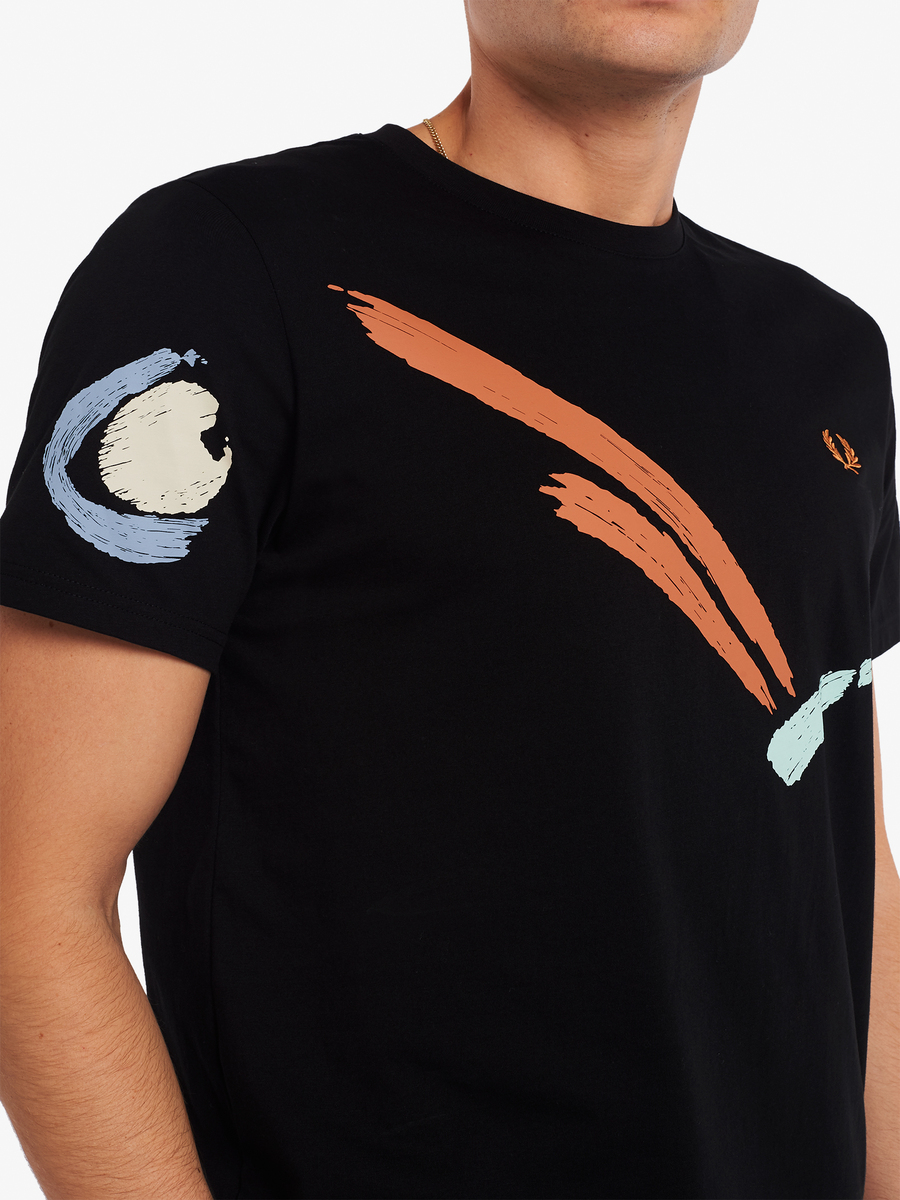 Inspired by designs from our archive, our Reissues collection reinterprets original pieces with directional styling. The graphic Tee may be a humble piece, but its relevance stretches back decades. During the late ‘80s and early ‘90s, printed graphics were bolder and brighter than ever - a sign of the times as multi-coloured sportswear took pride of place on the European tennis circuit – a long way from the strict whites of Wimbledon. For this piece, we delve into our archive to revive an abstract bouncing ball graphic. Fred Perry through and through.