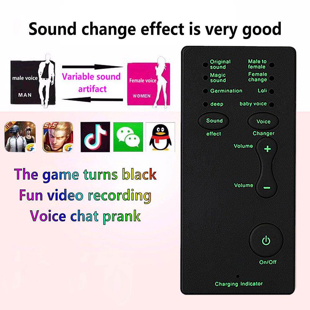 The Voice Changer has 7 different sound changes,Man to woman,Woman to Man,Little girl, Baby, Deep voice.