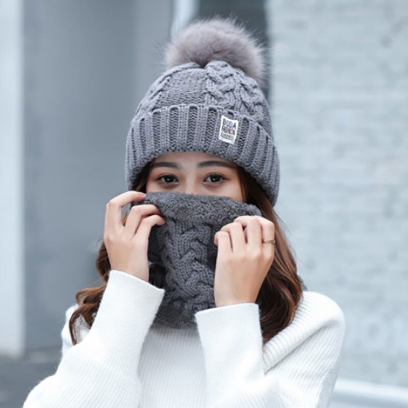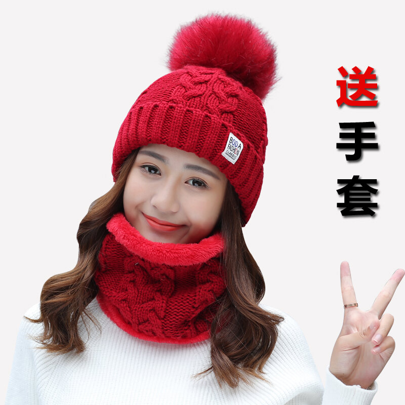 Fleece-Lined Hat Women's Winter Cold-Proof All-Match Warm Knitted Hat Thickened Woolen Cap Autumn and Winter Women's Northeast Hat Cycling Cotton-Padded Cap