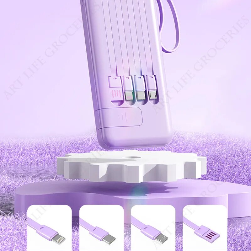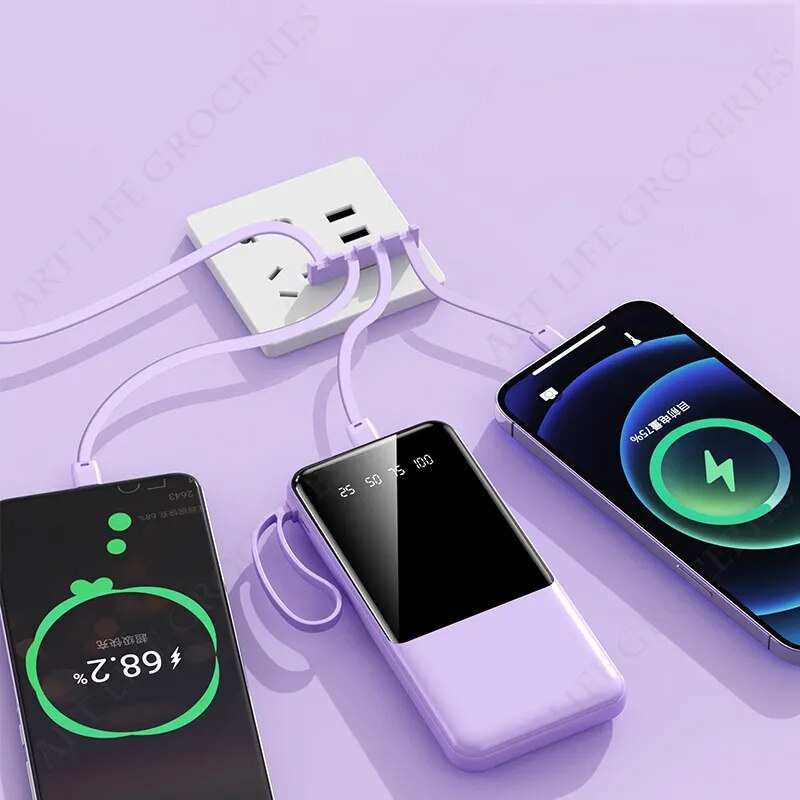 Portable Power Bank 20000mAh Fast Charging External Battery Charger Powerbank For iPhone Xiaomi Built in Cables