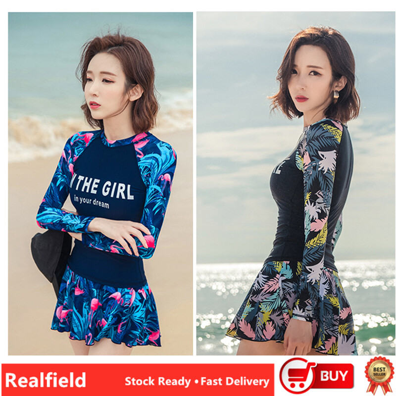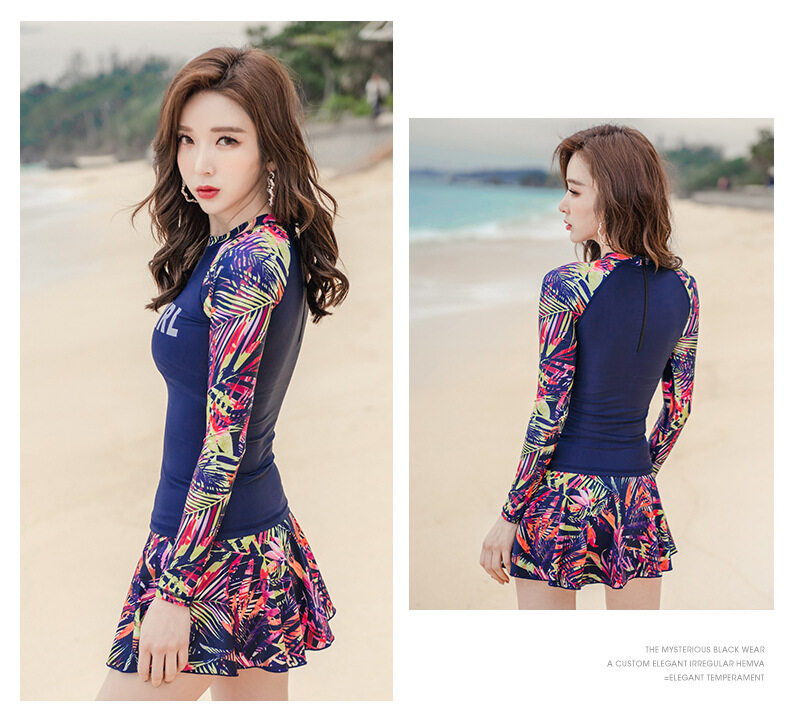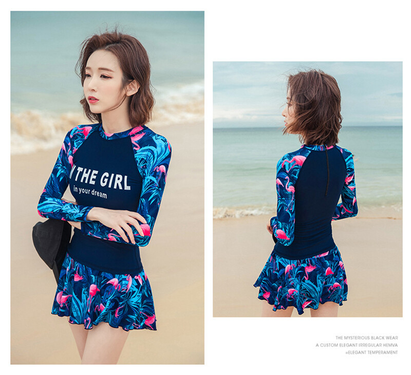 2Pcs/set Women Fashion Skirt Swimsuits Women Swimwear Long Sleeves Plus Size Zip Swimming Culottes Suit for Women