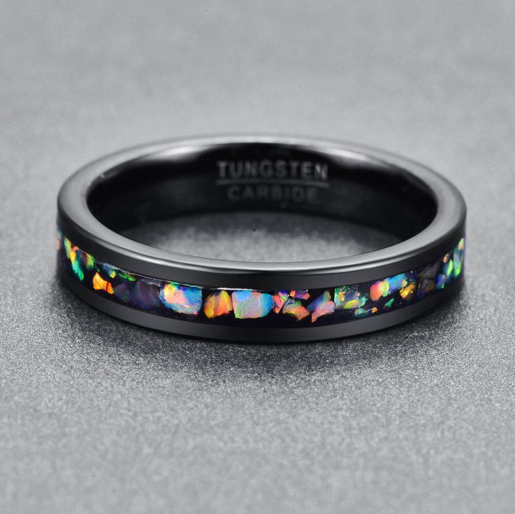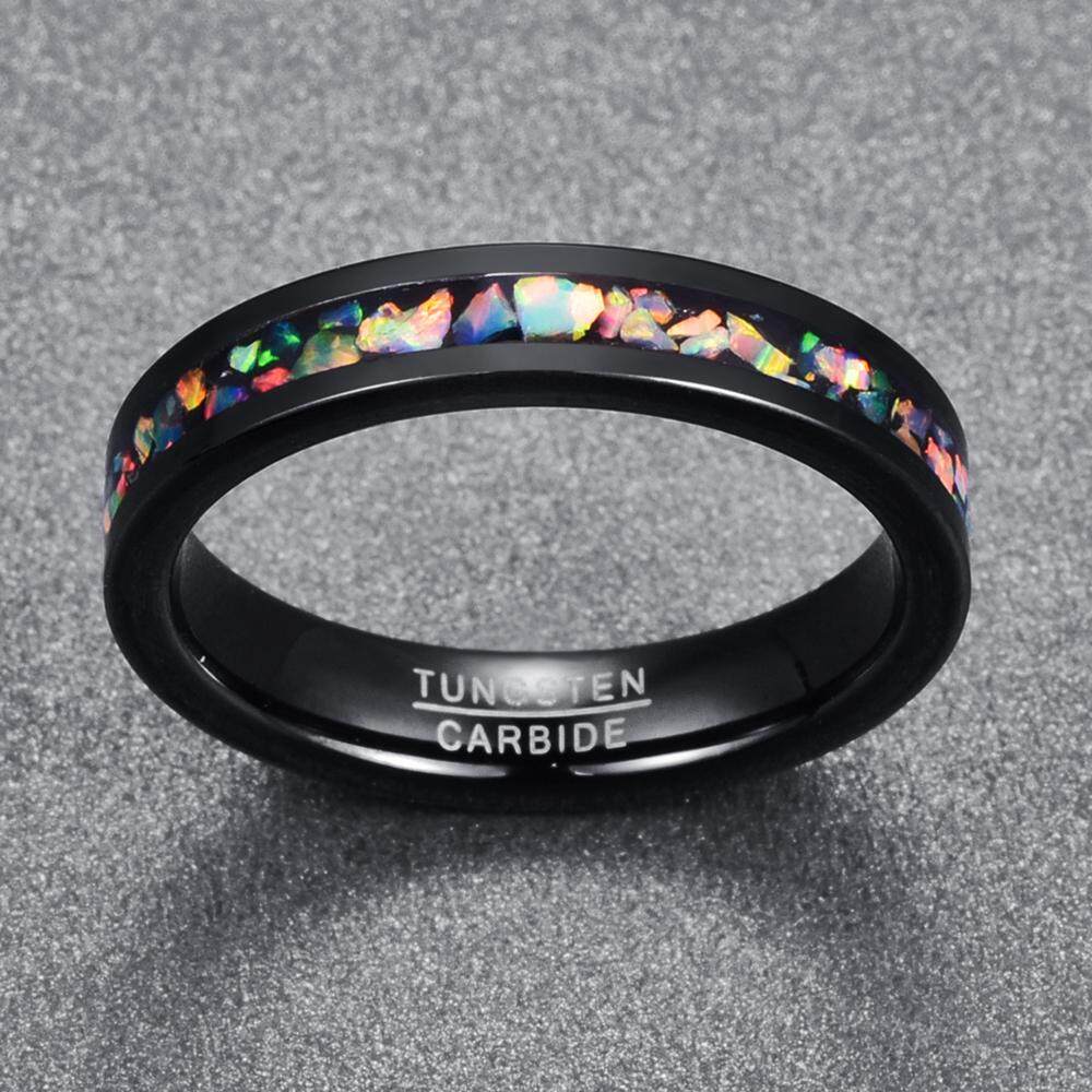 AVECON 【Support Engrave】4mm Colorful Opal Inlay Tungsten Ring Black Wedding Band Engagement Ring for Men Women Comfort Fit Size 5-12