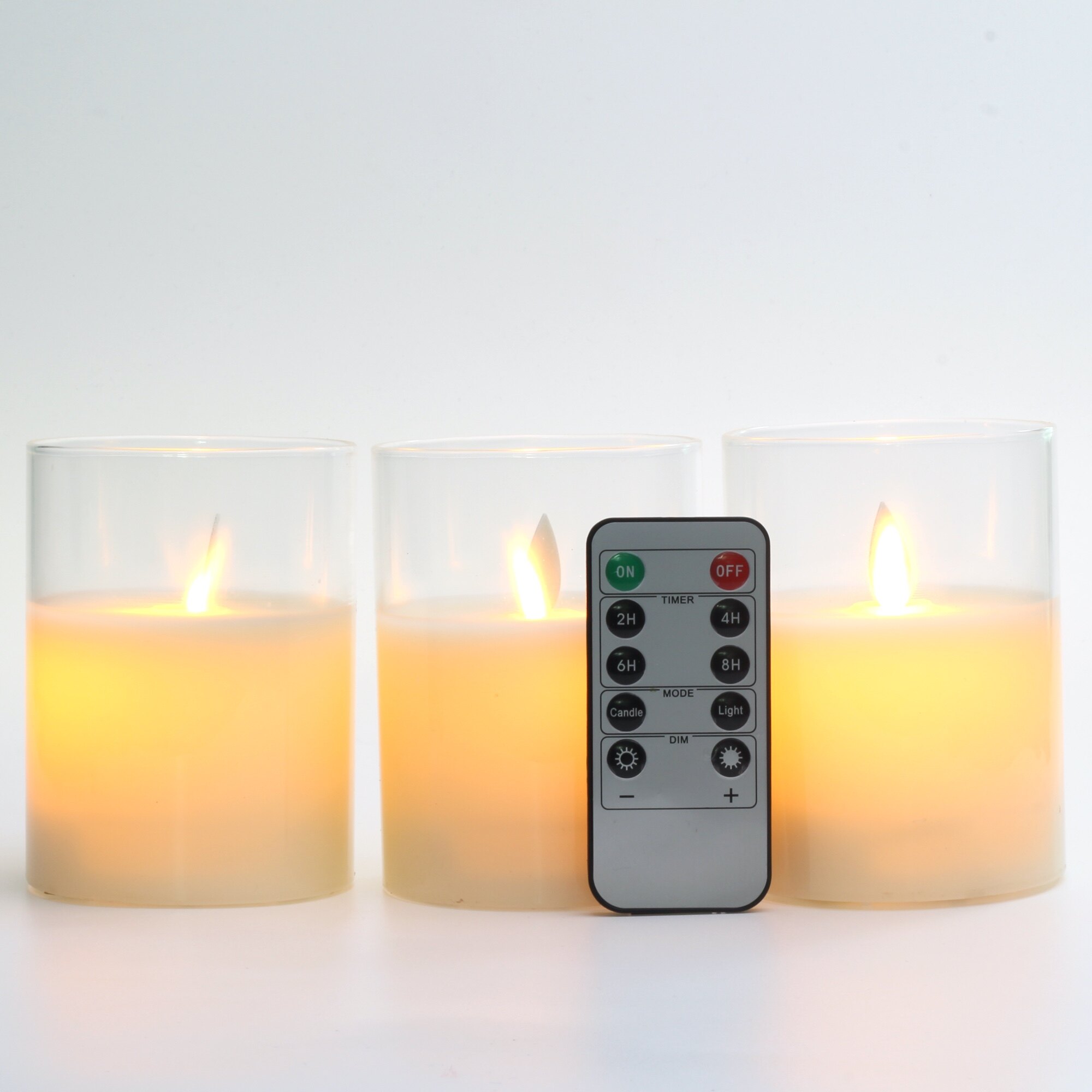 Glass Flameless Candles Set Real Wax Pillars & Moving Flame Wick LED Candles and 10-Key Remote Control with Timer, Battery Operated, Diameter 7.5cm