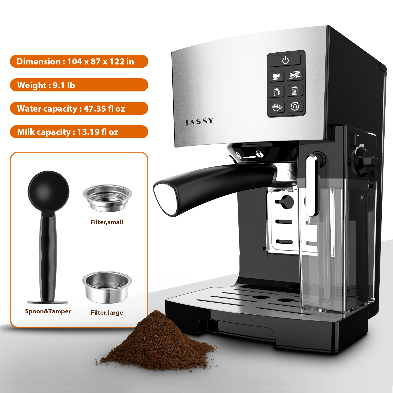 JASSY Automatic Nspresso coffee machine ,19 Bar nespresso machine,with Powerful Milk Frother ,for Espresso/Cappuccino/Latte/Mocha,One-Touching Brewing Heating System,1300W(Black)