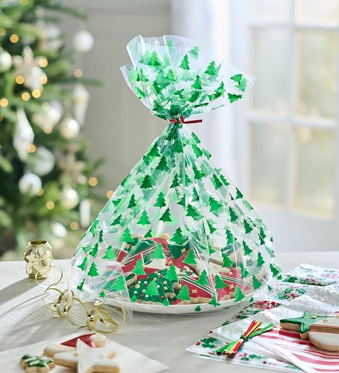American Greetings Christmas Cellophane Cookie Tray Bags with Twist-Ties, Holiday Patterns (12-Count)