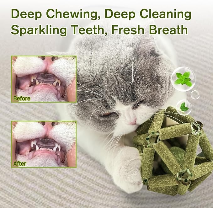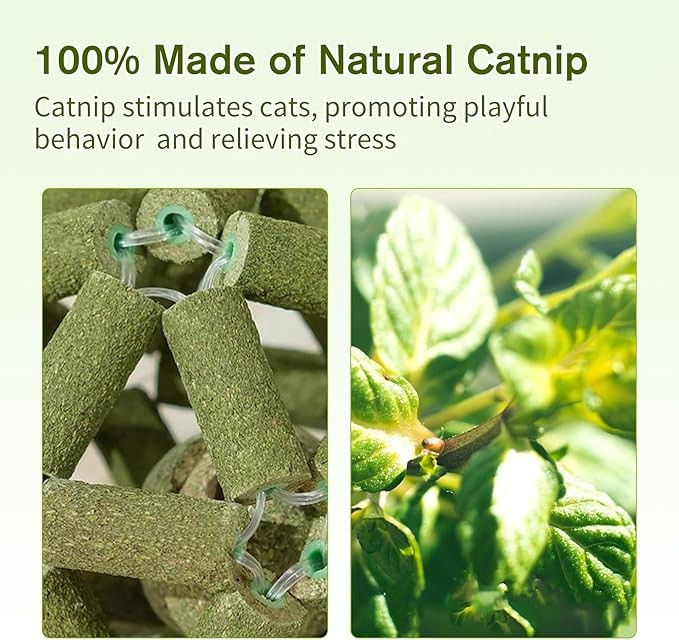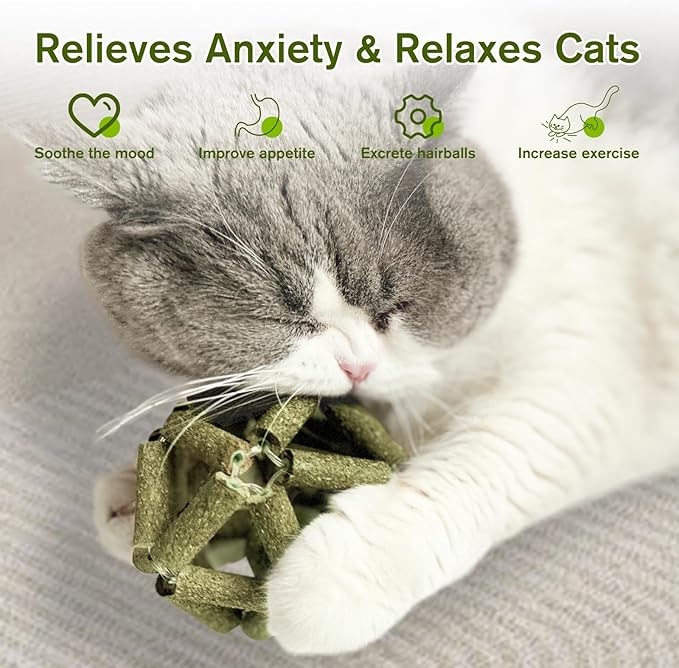 • 【100% Natural Cat Toy】Our catnip balls are 100% hand-woven, and made of natural silvervine stick,catnip. The cat nip toy is not only a safe, healthy cat toy, but also a funny cat chew toy for cats indoor.