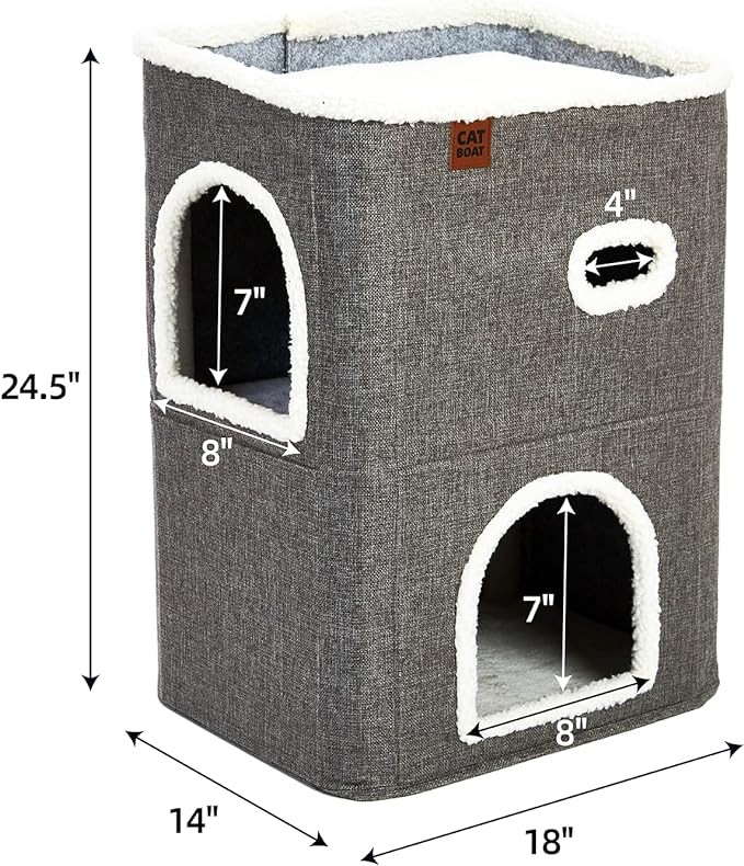 • TRI-LEVEL CAT BED - The Modern design of this Pet cat house offers 3 levels of interactive fun and the perfect place to nap or snuggle. CATBOAT Provide spacious cat houses for indoor cats.